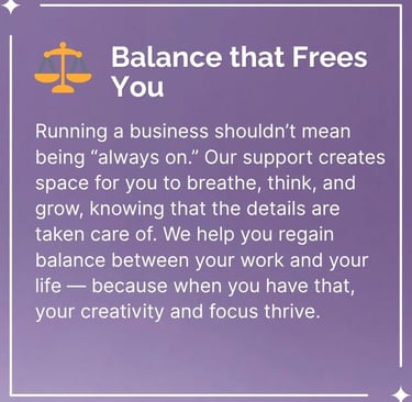 Bring balance, clarity, and focus to your day with professional virtual assistant support designed to simplify your systems and free your time.